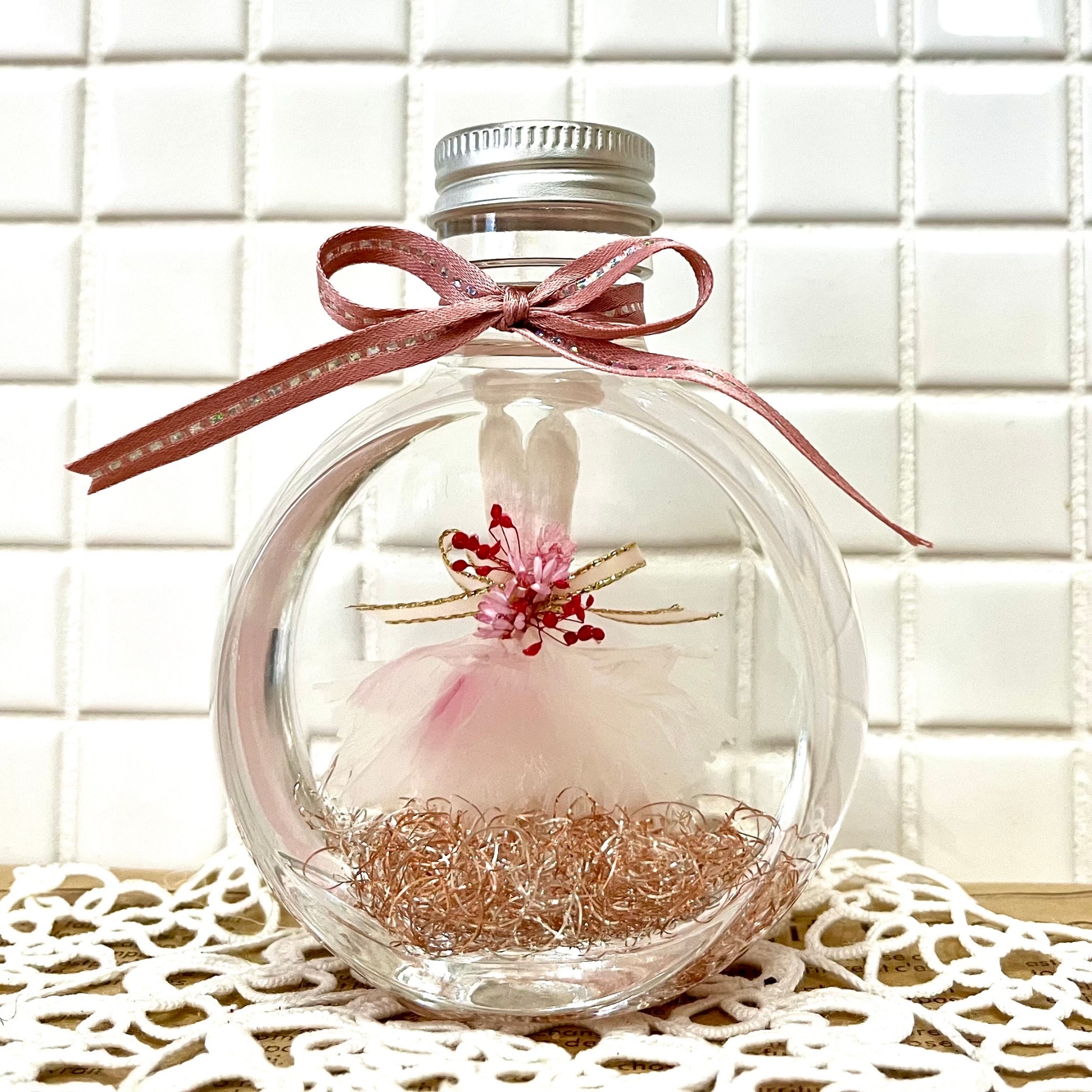 ネコ型の瓶の中でふんわりドレスが素敵なプレゼントになりますね。