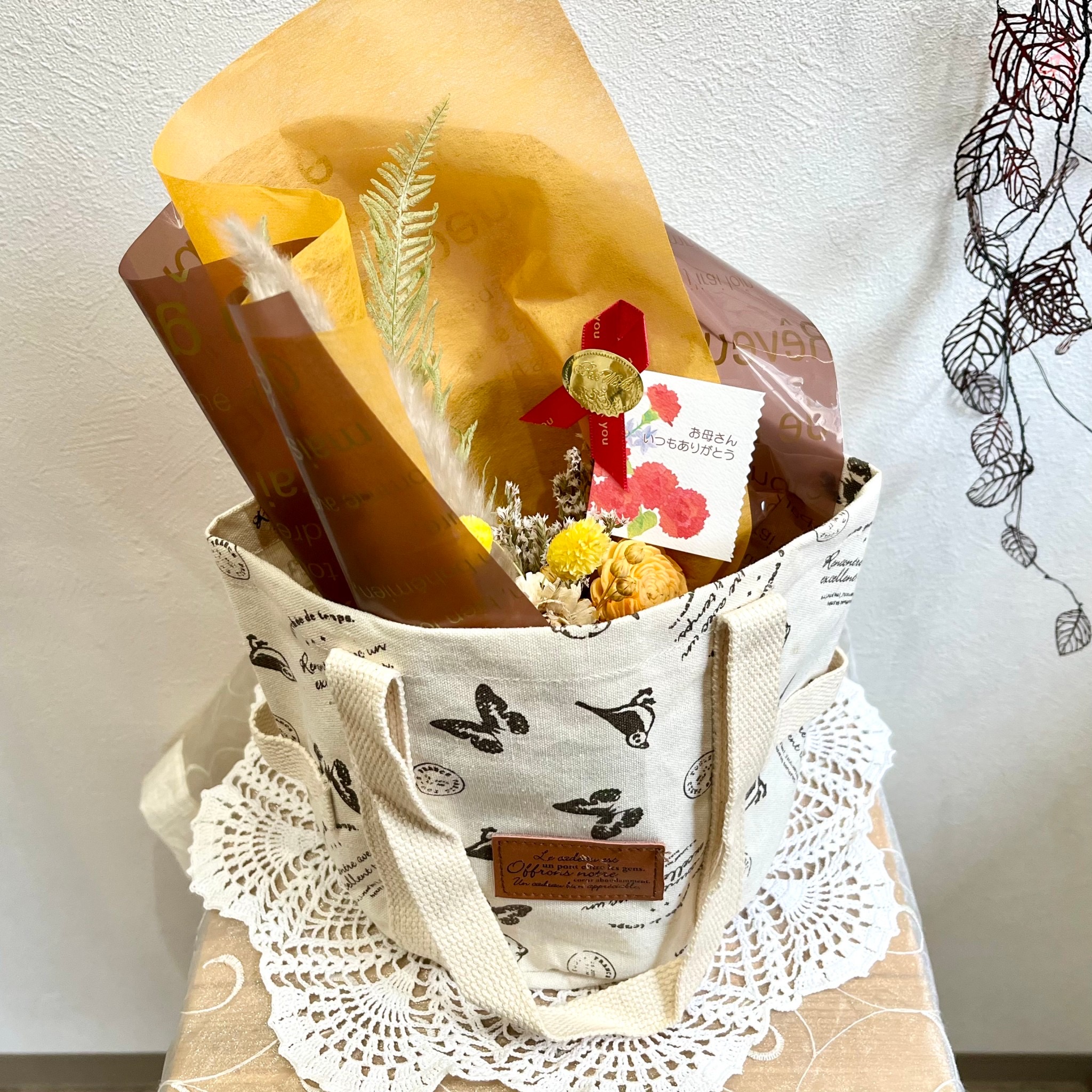 ②花束とトートバッグ